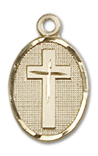 This cross is 1/2 x 1/4 inches in size. Our handmade crosses are available in Sterling Silver, 14kt Yellow Gold, and 14kt Gold-Filled. Choose a custom chain of your own styling.